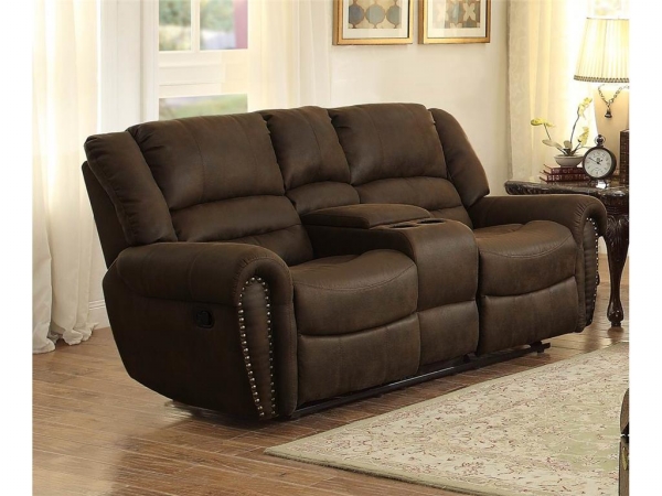 Homelegance 9668BJT-2 Center Hill Collection Doble Glider Reclining Love Seat with Center Console, Dark Brown - 83 x