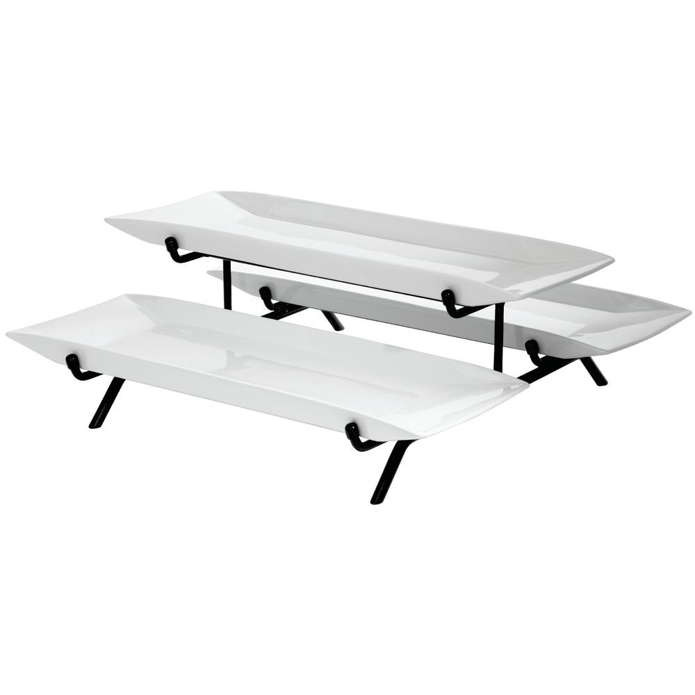 Cal-Mil SR1520-13 Melamine 3 Long Platter Display, 18" Length x 18" Width x 8.5" Height, White