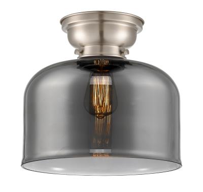 Innovations Lighting 623-1F-SN-G73-L Bell - 1 Light Flush Mount in Industrial Style-9.4 Inches Tall and 12 Inches Wide, Finish Color: Brushed Satin Nickel, Glass Color: Plated Smoke
