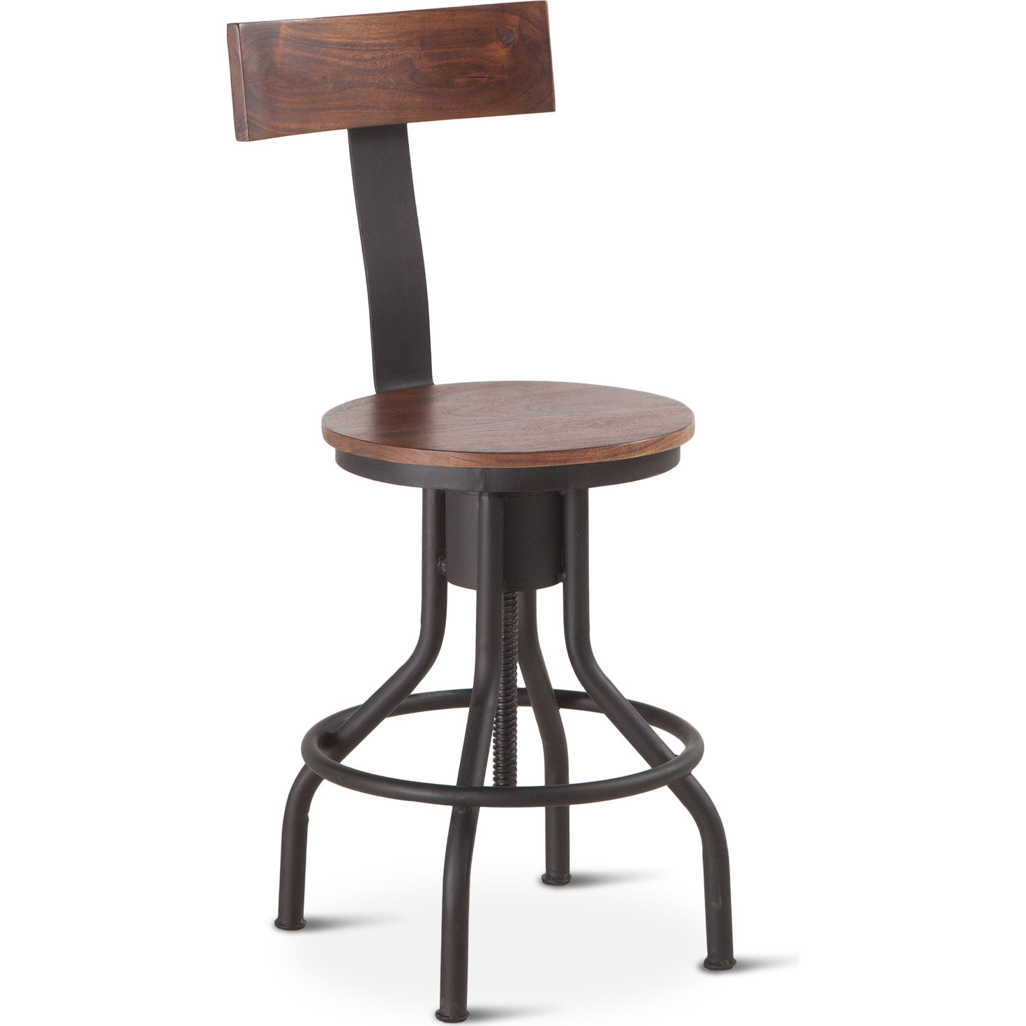 World Interiors ZWIMADC18-2X Artezia Adjustable Bar Stool in Walnut Finish Acacia Wood & Iron (Set of 2)