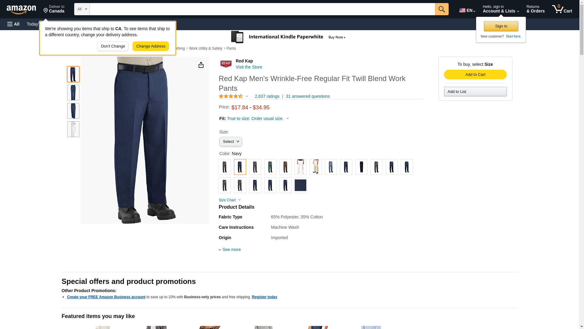 Red Kap Men's Wrinkle-Free Work Pants, Navy, 42W x 34L