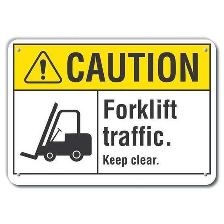 Caution Sign, Horizontal Rectangle, Number of Printed Sides 1, English, Sign Format ANSI/OSHA Format, Sign Legend Forklift Traffic. Keep Clear., Sign Legend Background Color White, Sign Legend Style Symbol and Text