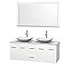 Wyndham Collection Centra 60 inch Double Bathroom Vanity in Matte White, White Carrera Marble Countertop, Arista White Carrera Marble Sinks, and 58 inch Mirror