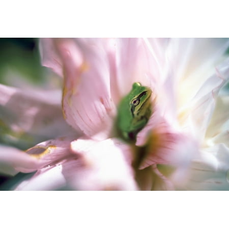 Pacific Tree Frog In A Dahlia Flower British Columbia Poster Print (34 x 22)