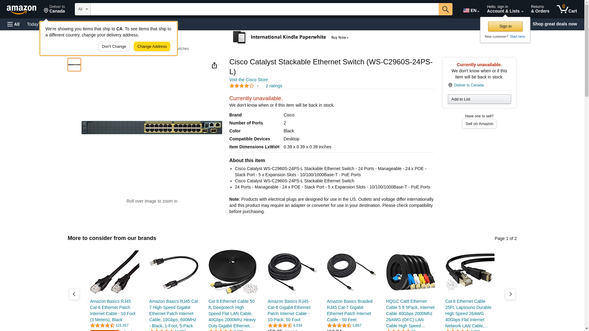 - Cisco Catalyst WS-C2960S-24PS-L Stackable Ethernet Switch