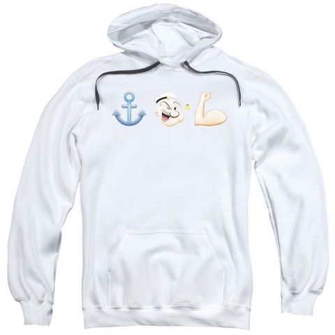 Trevco Popeye-Emoji Adult Pull-Over Hoodie, White - 3X