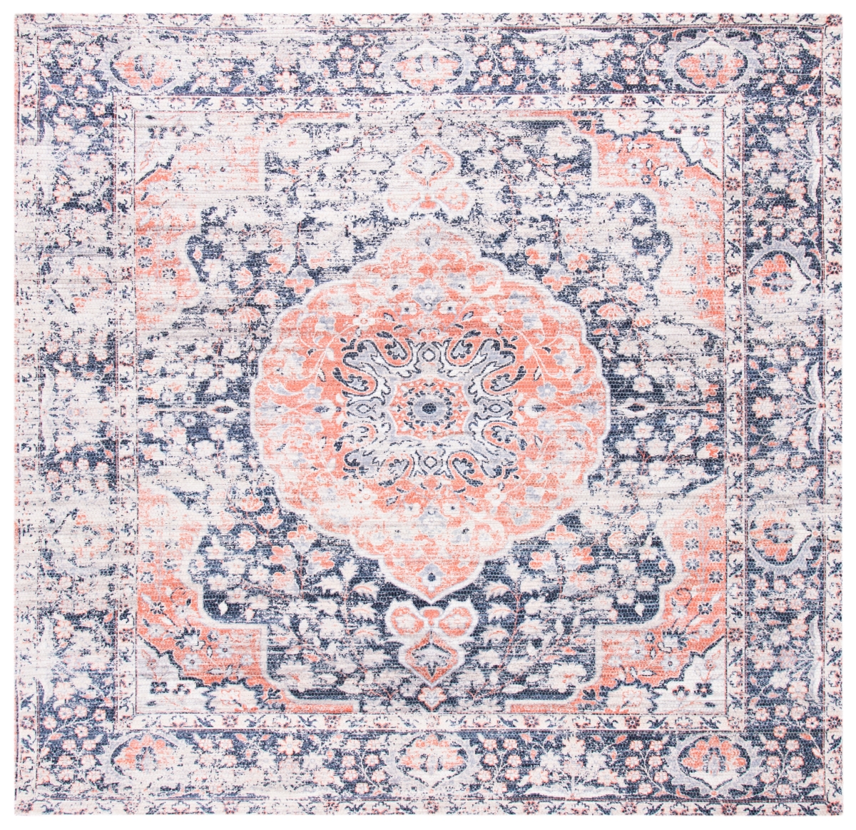 Safavieh SFN353N-6SQ 6 x 6 ft. Saffron Square Power Loomed Traditional Rug, Navy & Ivory