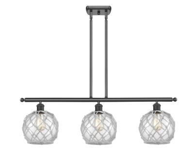 INNOVATIONS LIGHTING 516-3I-BK-G122-8RW BALLSTON FARMHOUSE ROPE 36 INCH CLEAR WITH WHITE GLASS ISLAND LIGHT, MATTE...