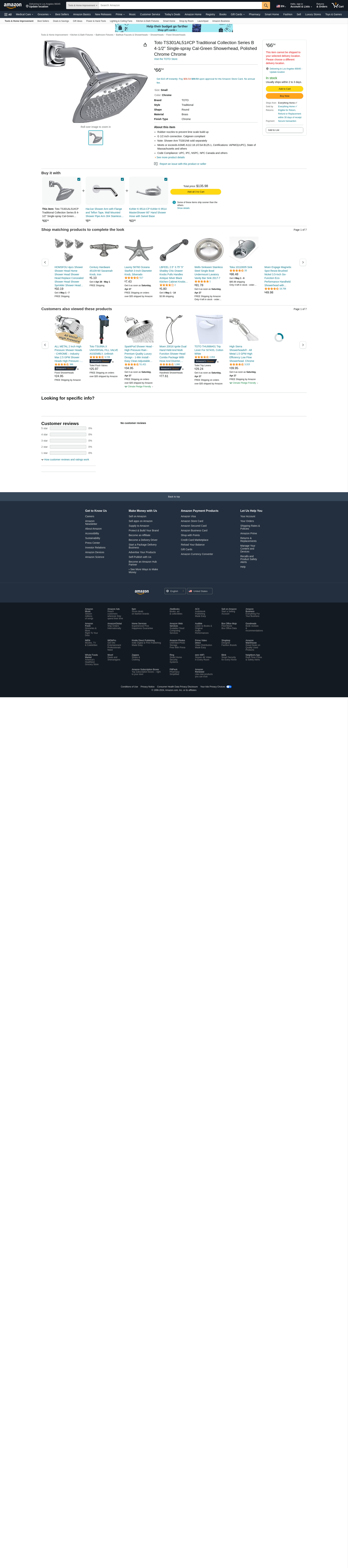 Toto TS301AL51 Traditional Collection Series B Single-Spray Showerhead 4-1/2 Inch, 2.0 gpm Flow Rate Classic, clean design. Features rubber nozzles. Flow rate of 2.0 gpm. Single-Spray Showerhead 4-1/2" Maximum Flow Rate of 2.0 gpm Rubber Nozzles G 1/2 Connection Shower Arm Sold Separately Product Features: Maximum flow rate of 2.0 gpm Rubber nozzles to prevent limescale build up G 1/2" connection Available Finishes: Brushed Nickel: TS301AL51#BN Polished Chrome TS301AL51#CP Polished Nickel TS301AL51#PN Specifications: Warranty - Lifetime Limited Warranty (Residential Use) One Year (Commercial Use) Material - Brass / Plastics Shipping Weight - TS301AL51: 0.9 lbs. TS301AL61: 1.0 lbs. Shipping Dimensions - TS301AL51 & TS301AL61: 3-1/2""L x 5-3/4""W x 6-3/4""H Maximum Flow Rate - 2.0 gpm (7.6 lpm) SKU: TS301AL51#BN TS301AL51#CP TS301AL51#PN TS301AL51BN TS301AL51CP TS301AL51PN"