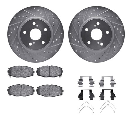 Dynamic Friction Company Front Brake Rotors-Drilled and Slotted-Silver with 5000 Advanced Brake Pads includes Hardware 7512-76021