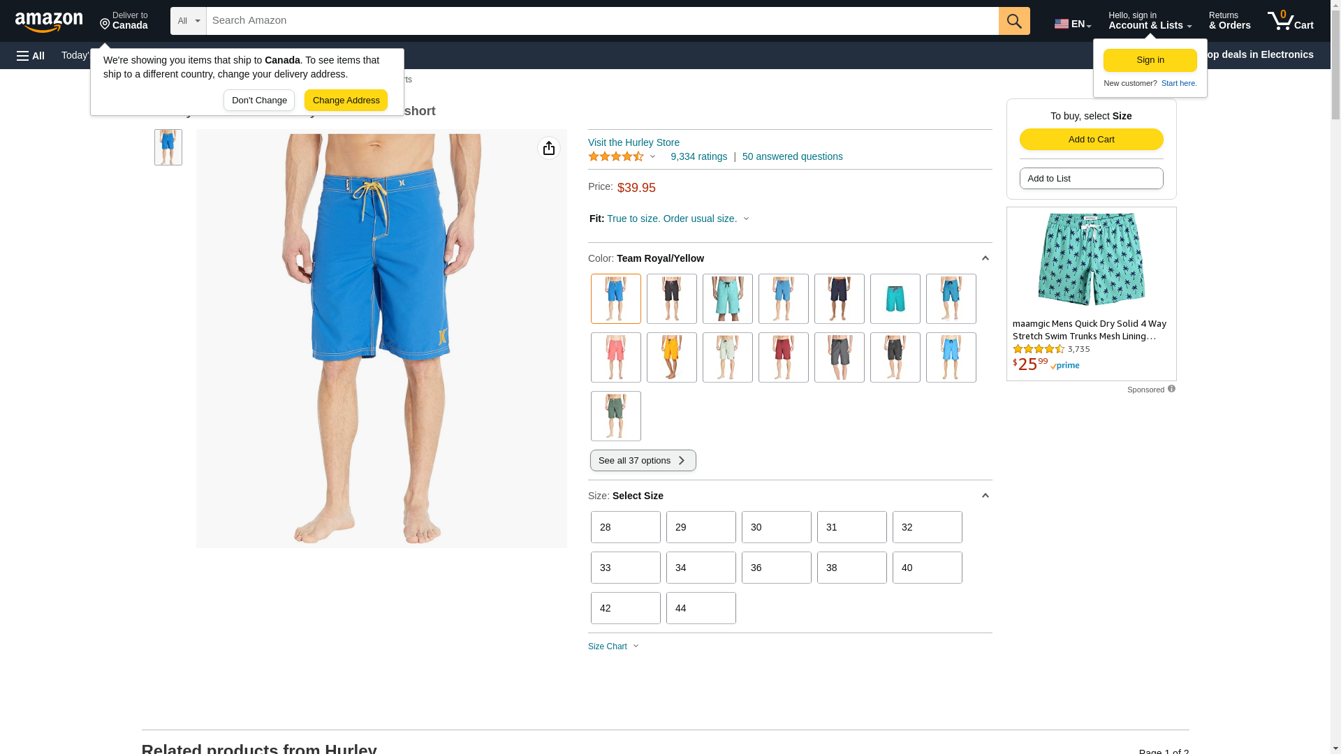 Hurley One & Only Boardshort 22" Team Royal/Yellow 34