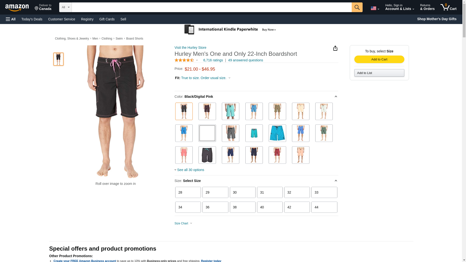 Hurley Men's One and Only 22 Inch Boardshort, Black, 30