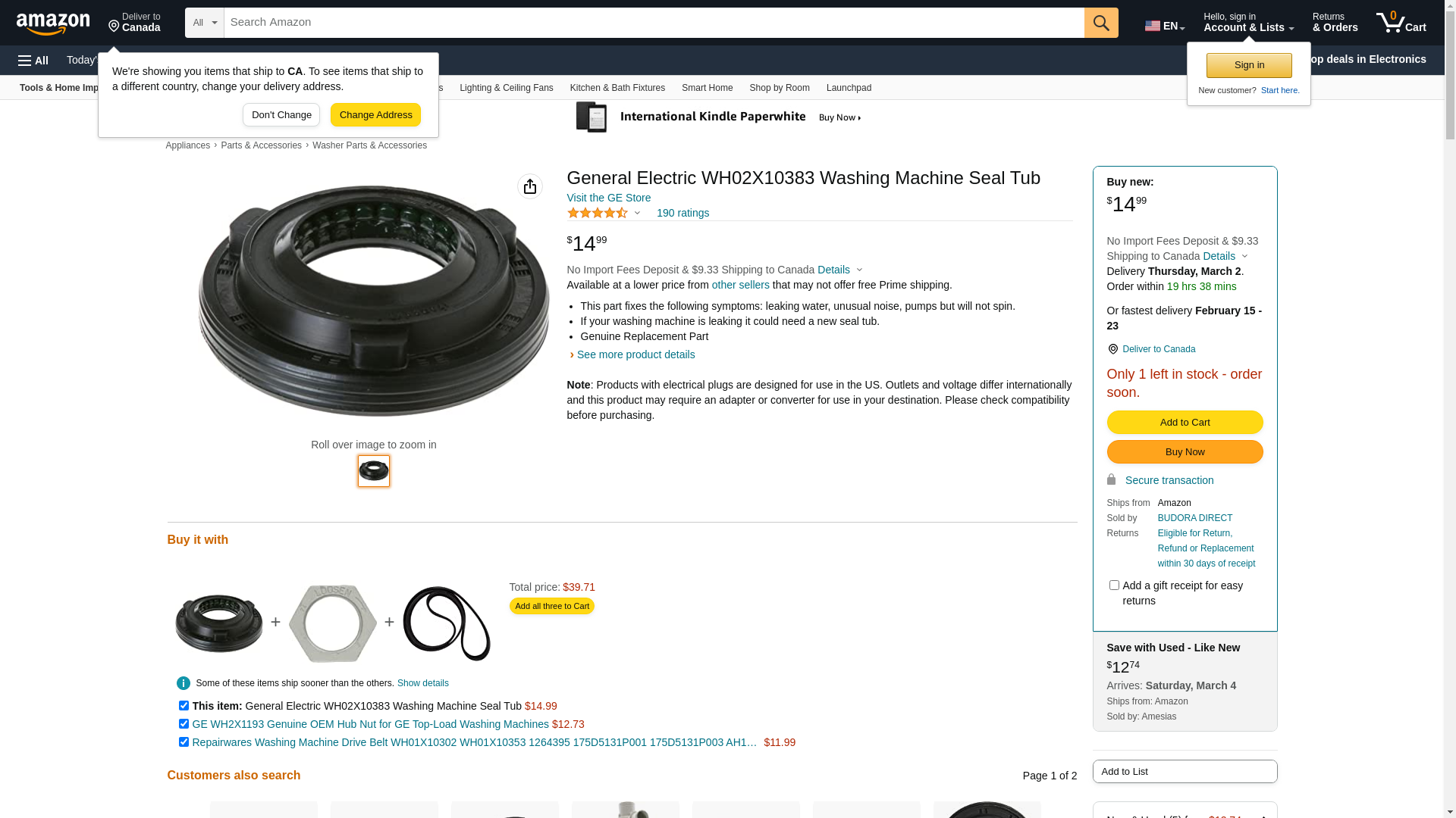 ![]() midwestapplianceparts.com | WH02X10383-GEH-P | 1 | -2 | 1 | 1 @ $13.74 |