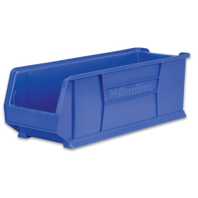 Store, sort and organize all of your bulky items with these AKRO-MILS Super-Size AkroBins. Made from durable polypropylene, sides are reinforced and will not spread under heavy loads. Use on shelving, carts and workstations. Bins feature: extra-wide stacking ledge to ensure a secure stack, extra-large front area for labels (not included), and molded-in rear carrying handle. Not recommended for hanging systems. Order bins in carton quantities specified, priced each. Appropriate for lean manufacturing.