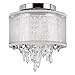 Worldwide Lighting Tempest Collection 1 Light Chrome Finish Crystal Flush Mount Ceiling Light with White Organza Shade 8" D x 10" H Small