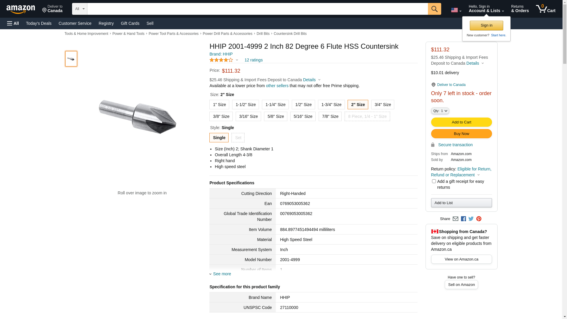 HHIP 2001-4999 2 Inch 82 Degree 6 Flute HSS Countersink