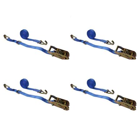 1" x 10' Ratchet Strap w/ J-Hook & D-Ring - 4 Pack