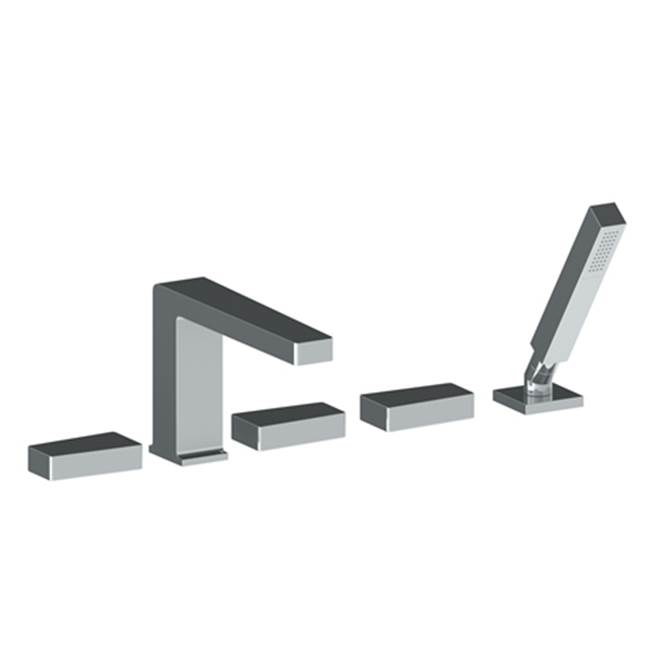 WATERMARK 35-8.1-ED1-MB EDGE 9 5/8 INCH THREE HANDLE DECK MOUNT WIDESPREAD ROMAN TUB FAUCET WITH HANDSHOWER, MATTE...