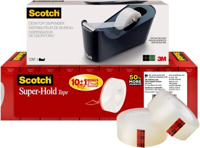 Scotch Tape Dispenser Value Pack with Scotch Super-Hold Tape, Black Dispenser, 1 in Core, 12 packs (700K10C18BLK)