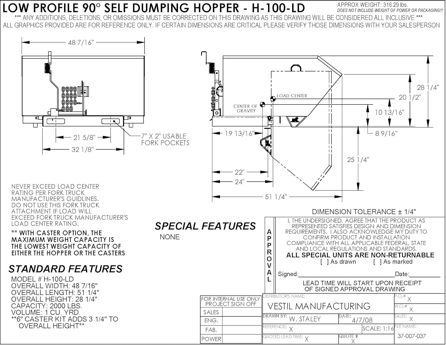 Order H-100-LD-YEL by Vestil Self Dumping Hopper, 1 CY - US Mega Store