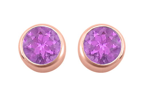 Fine Jewelry Vault UBERAGVR600AM 2 carat AmethystFebruary Birthstone Bezel Stud Earrings in 14K Rose Gold Vermeil