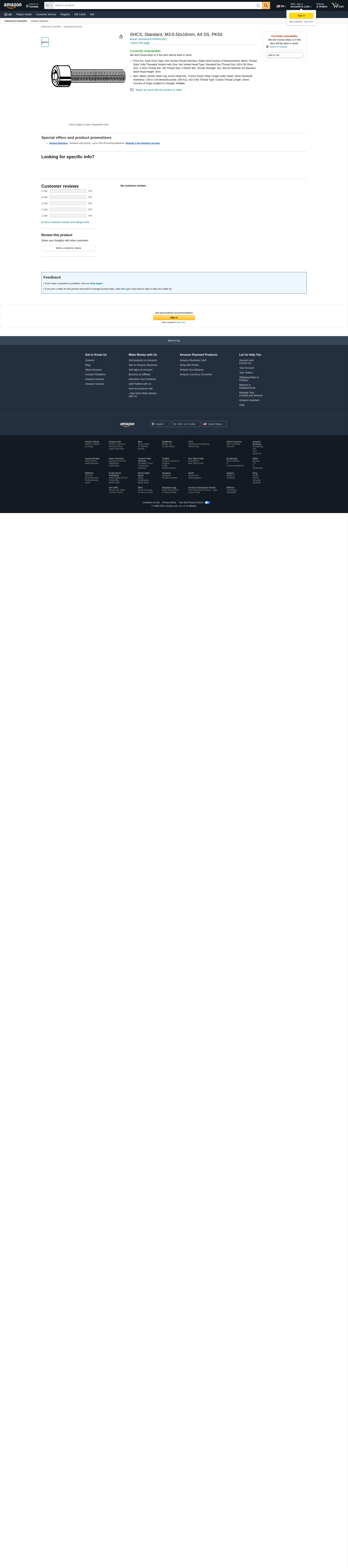 ' Metric Socket Head Cap Screw, Standard, M3-0.50, Material A4 Stainless Steel, Plain Finish, Thread Size 0.50mm, Drive Type Hex Socket, Drive Size 2.5mm, Thread Type Coarse, Thread Style Fully Threaded, Thread Direction Right Hand, Length under Head 16mm, Thread Length 16mm, Head Height 3mm, Thread Dia. M3, Package Quantity 50 '