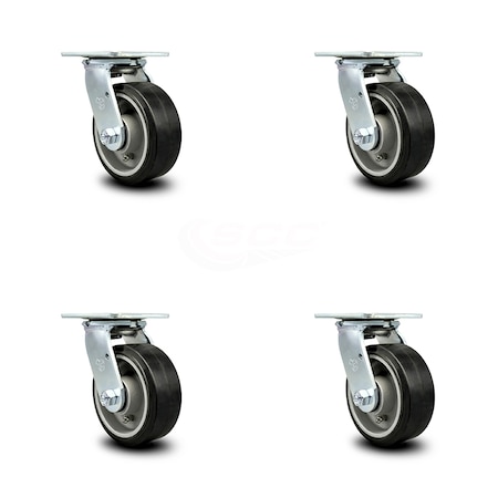 Rubber on Aluminum Swivel Caster w/Main. Free Bearings Set of 4 w/5" x 2" Black Wheels - Includes 4 Swivel - 2000 lbs Total Capacity - Service Caster Brand