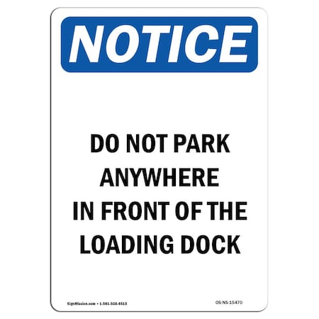 OSHA Notice Sign, NOTICE Do Not Park In Front Of The Loading Dock, 10in X 7in Aluminum