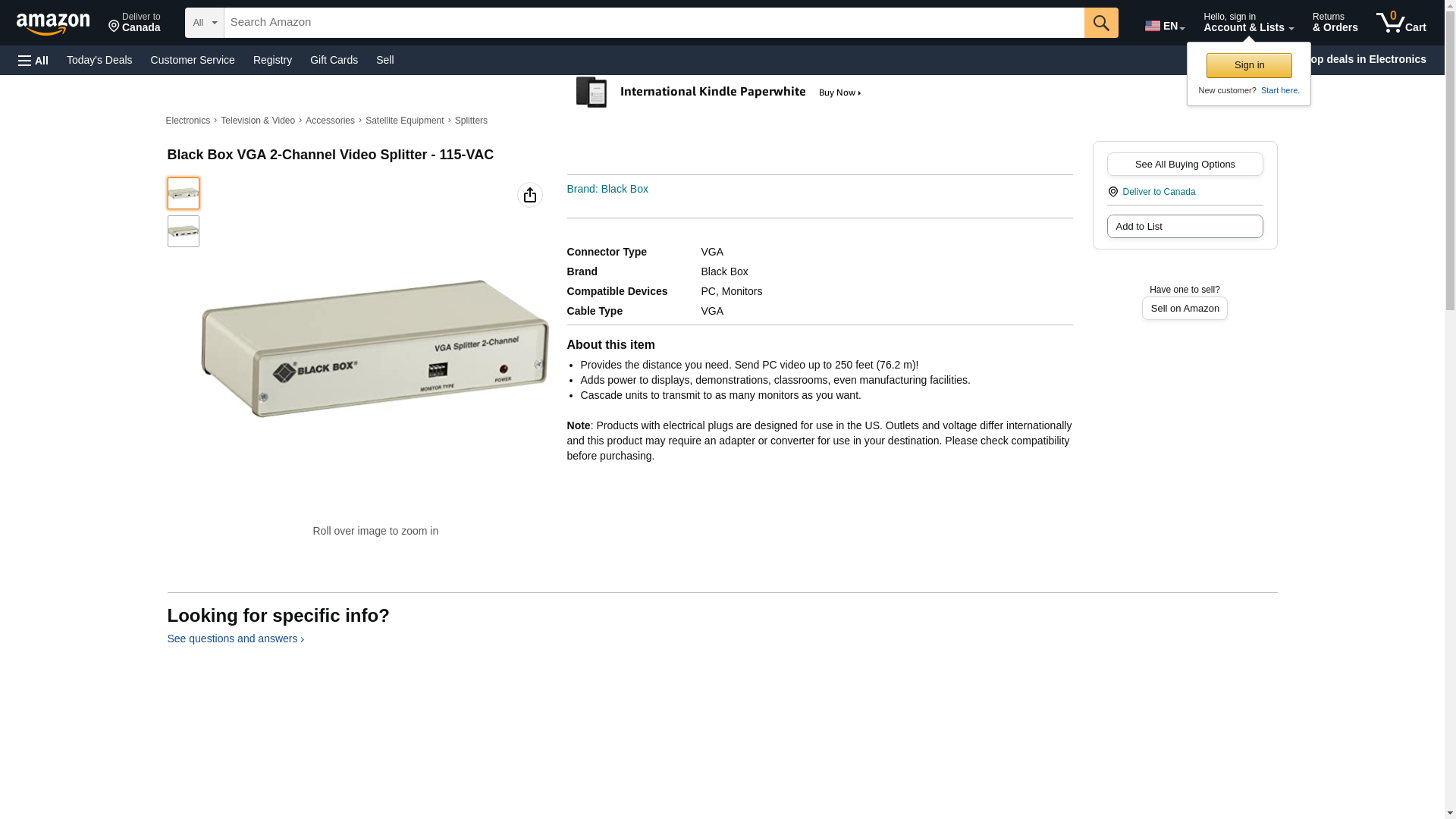 If you are a gadget lover our Electronics catalog is your dream destination Choose from hundreds of gadgets and accessories to suit different uses and add some entertainment facility and convenience to your life Features. Provides the distance you need Send PC video up to 250 feet 762 m. Adds power to displays demonstrations classrooms even manufacturing facilities . Cascade units to transmit to as many monitors as you want . Quick setup Just plug in your monitors and snap a few DIP switches . The 300MHz bandwidth gives you sharp images at any resolution VGA SGA and XGA . Includes one 6foot 18m VGA input cable Specifications. Connectors VGA input 1 HD15 F VGA output 2 HD15 F Power input 1 5pin mini DIN. Controls Monitor type selection 4position frontpanel DIP switch. Dimensions 15H x 73W x 33D 38 x 185 x 84 cm. Power Input 115 VAC 60 Hz. RoHS Yes. Weight 325 lbs