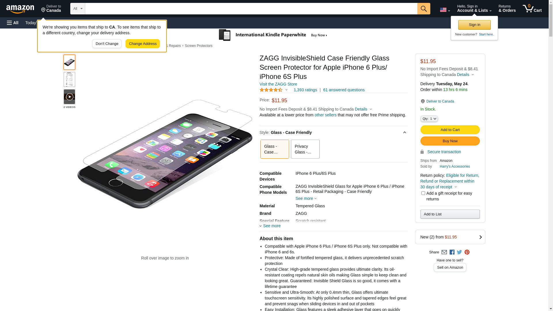 ZAGG InvisibleShield Case Friendly Glass Screen Protector for Apple iPhone 6 Plus/ iPhone 6S Plus