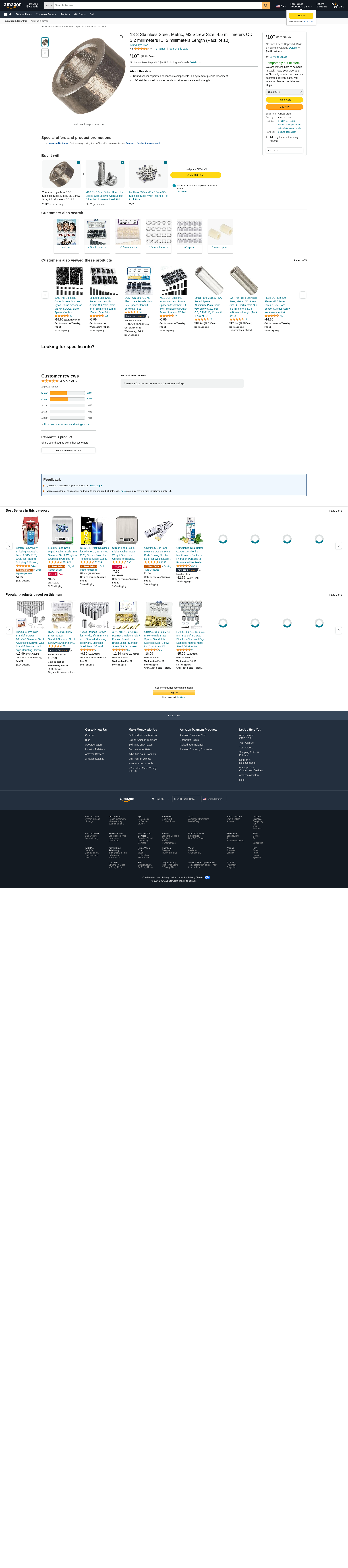Lyn-Tron, 18-8 Stainless Steel, Metric, M3 Screw Size, 4.5 millimeters OD, 3.2 millimeters ID, 2 millimeters Length (Pack of 10)