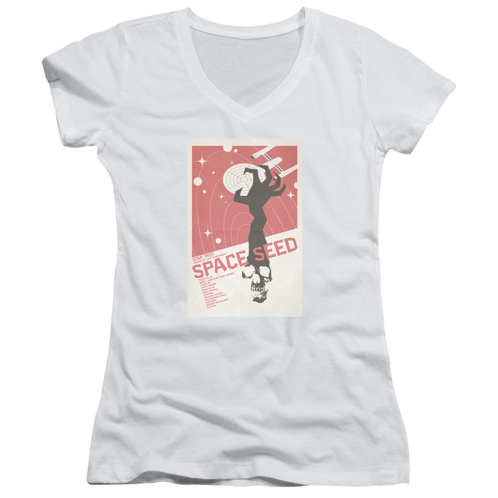 Trevco CBS1959-JV-3 Star Trek & TOS Episode 22 Juniors V-Neck Sheer Jersery with Cap Sleeve, White - Large