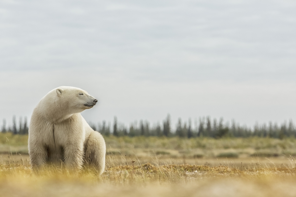 Posterazzi DPI12268178LARGE Polar Bear Sitting by The Coast of Hudson Bay - Manitoba Canada Poster Print - 38 x 24 in. -