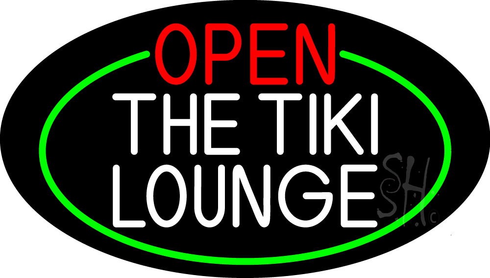 The Sign Store N105-16780 17 x 30 in. Open the Tiki Lounge Oval with Green Border Neon Sign - Green, White & Red