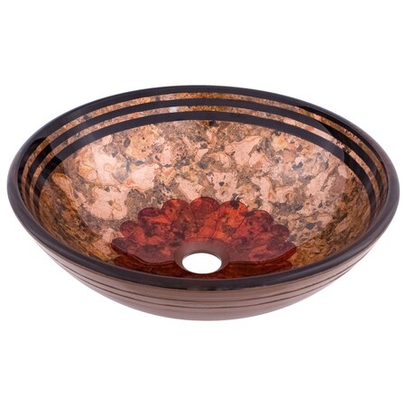 From the exclusive hand-painted vessel collection of Novatto, Tappezzeria is a blend of elegance and contemporary drama. Constructed of high tempered glass, this round sink has a unique hand-painted design of brown, tan and black. Tempered glass cannot be compared to everyday synthetic porcelain and ceramics. Novatto uses advanced technology, including computerized glass processing, to produce glass basins with unmatched structural integrity and longevity. In-house testing has found these glass vessels to be very durable and forgiving. Standard 1.75-inch drain opening. Suggested Novatto pop-up drains: PUD-ORB (oil rubbed bronze), PUD-BN (brushed nickel), and PUD-CH (chrome). Suggested matching Novatto mounting rings: MR-001ORB (oil rubbed bronze), MR-001BN (brushed nickel), and MR-001CH (chrome). For best cleaning results, a soft cloth with mild soap and water or a non-abrasive glass cleaner is recommended.
