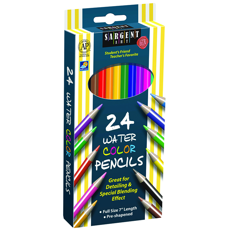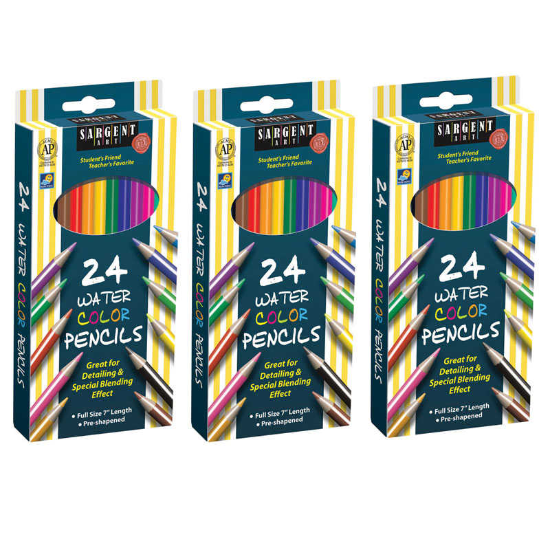 Sargent Art Watercolor Pencils are ideal for detailing small areas and creating unique effects with 3.3mm leads. Use dry as you would a regular colored pencil or add water and works just like a watercolor paint! Non-toxic. Each pack includes 24 pre-sharpened 7" pencils in different colors. Sold as 3 packs for a total of 72 pencils.