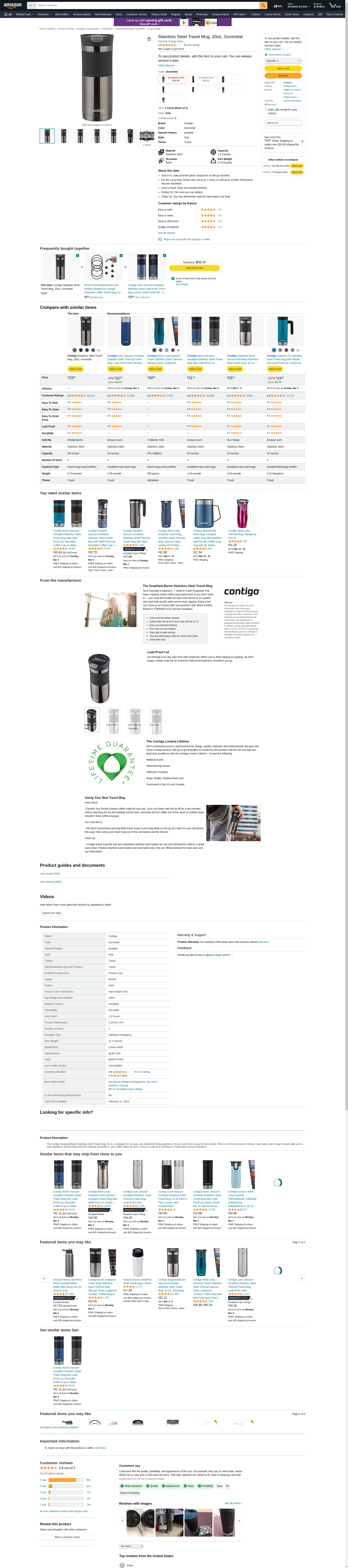 Contigo Stainless Steel Travel Mug, 20oz, Gunmetal