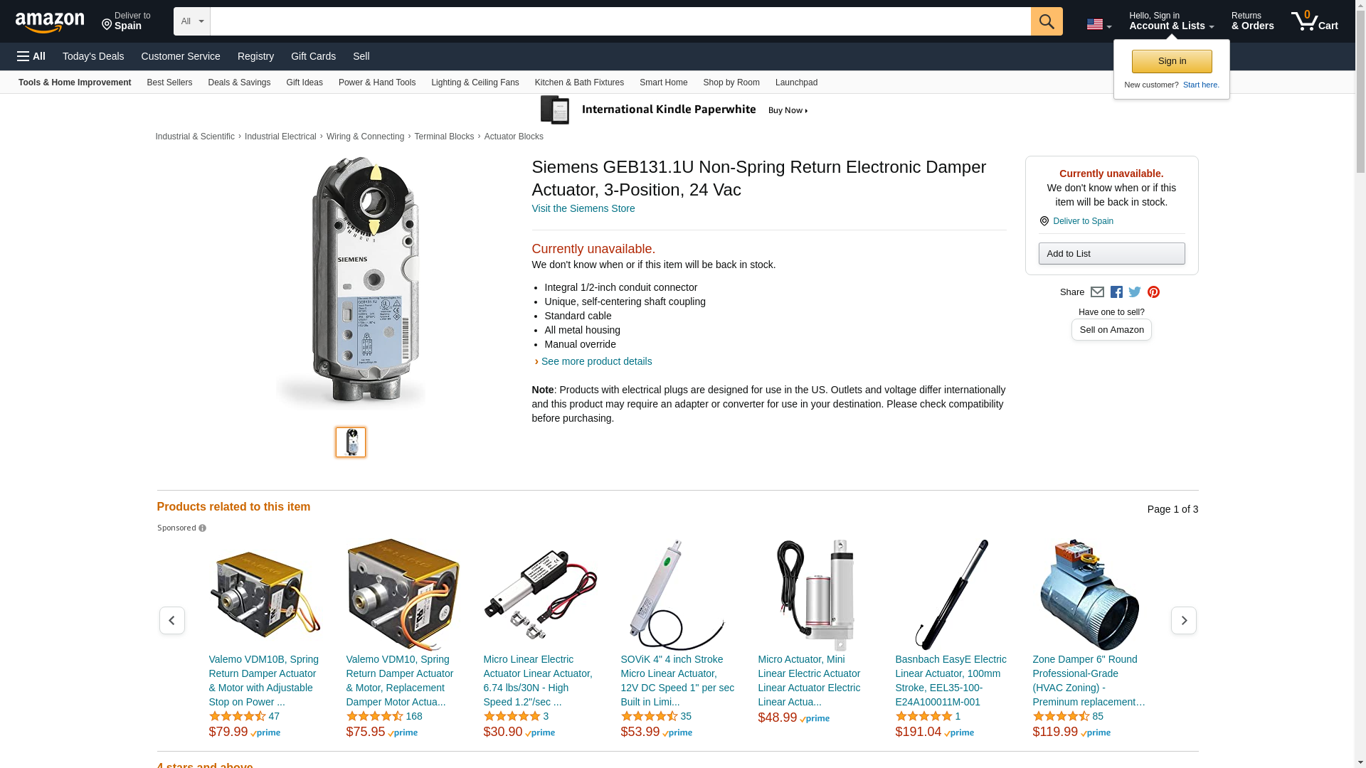 Siemens GEB131.1U Non-Spring Return Electronic Damper Actuator, 3-Position, 24 Vac