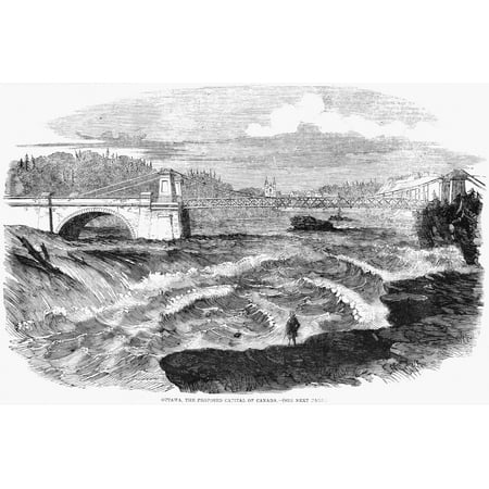 Ottawa Canada 1858 NOttowa The Proposed Capital Of Canada Wood Engraving 1858 Rolled Canvas Art - (18 x 24)