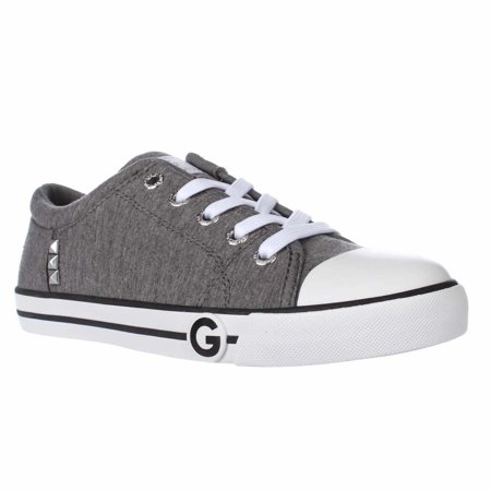 Superior style meets premium comfort in the Oona fashion sneaker by G by Guess. Fabric upper. Rubber sole. Lace-up front. Silver tone hardware. Stud detail. Logo embroidered on back.