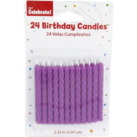<br /> <b>Way to Celebrate Candles, 24 count, Purple:</b> <ul> <li>Package contains 24 purple candles each measuring 2.35"</li> <li>Ideal for birthday parties</li> <li>Wax candles with white wicks</li> <li>Way to Celebrate dinner plates, streamers, decorations and balloons are also available (each sold separately)</li> <li>Warning: to prevent fire burn within sight, keep away from things that catch fire, always leave at least 1" between burning candles</li> <li>Keep away from children and pets</li> </ul>