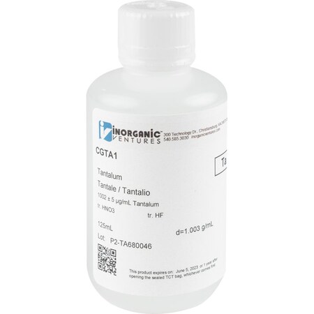 Inorganic Ventures CGTA1-1 1,000ppm Tantalum (Ta) Standard for ICP, 125mL Volume