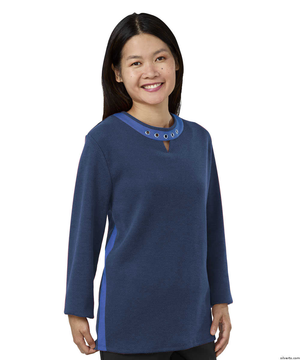 Silverts 247600304 Grommet-Framed Open Back Adaptive Top for Disabled Adults Women - Rich Blue, Extra Large