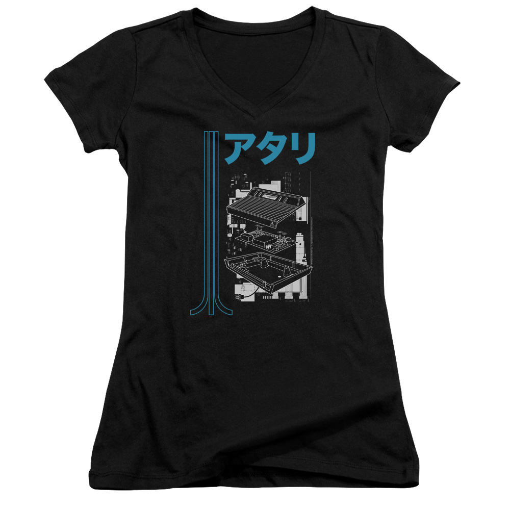 Trevco ATRI196-JV-5 Atari & Schematic Junior Sheer Cap Sleeve Cotton V-Neck T-Shirt, Black - 2X