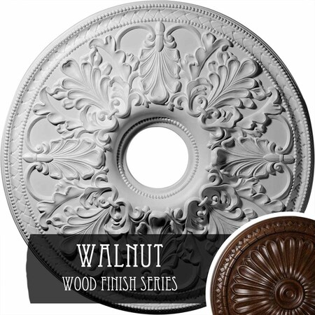 Ekena Millwork CM23ASWAS Ashley Ceiling Medallion, 23 7/8"OD x 4"ID x 2 1/8"P, Hand-Painted Walnut