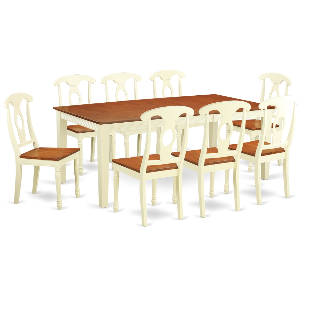 East West Furniture QUKE9-WHI-W Table Set - Table & 8 Chairs, Buttermilk & Cherry - 9 Piece