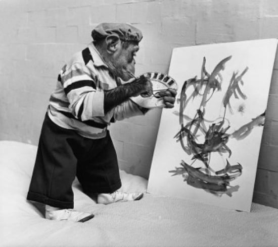 Posterazzi SAL9901545 Side Profile of a Chimpanzee Holding a Paintbrush & a Palette Poster Print - 18 x 24 in.