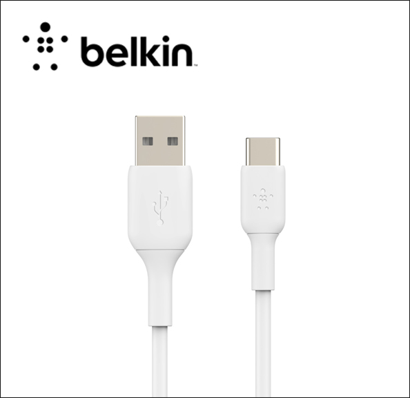 Belkin BOOST CHARGE Braided USB-C to USB-A Cable, 15 cm / 6", White | Quill.com