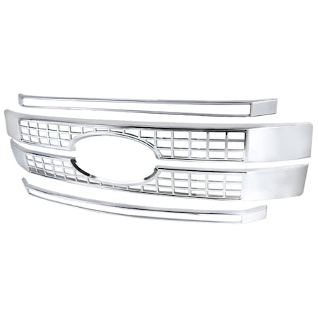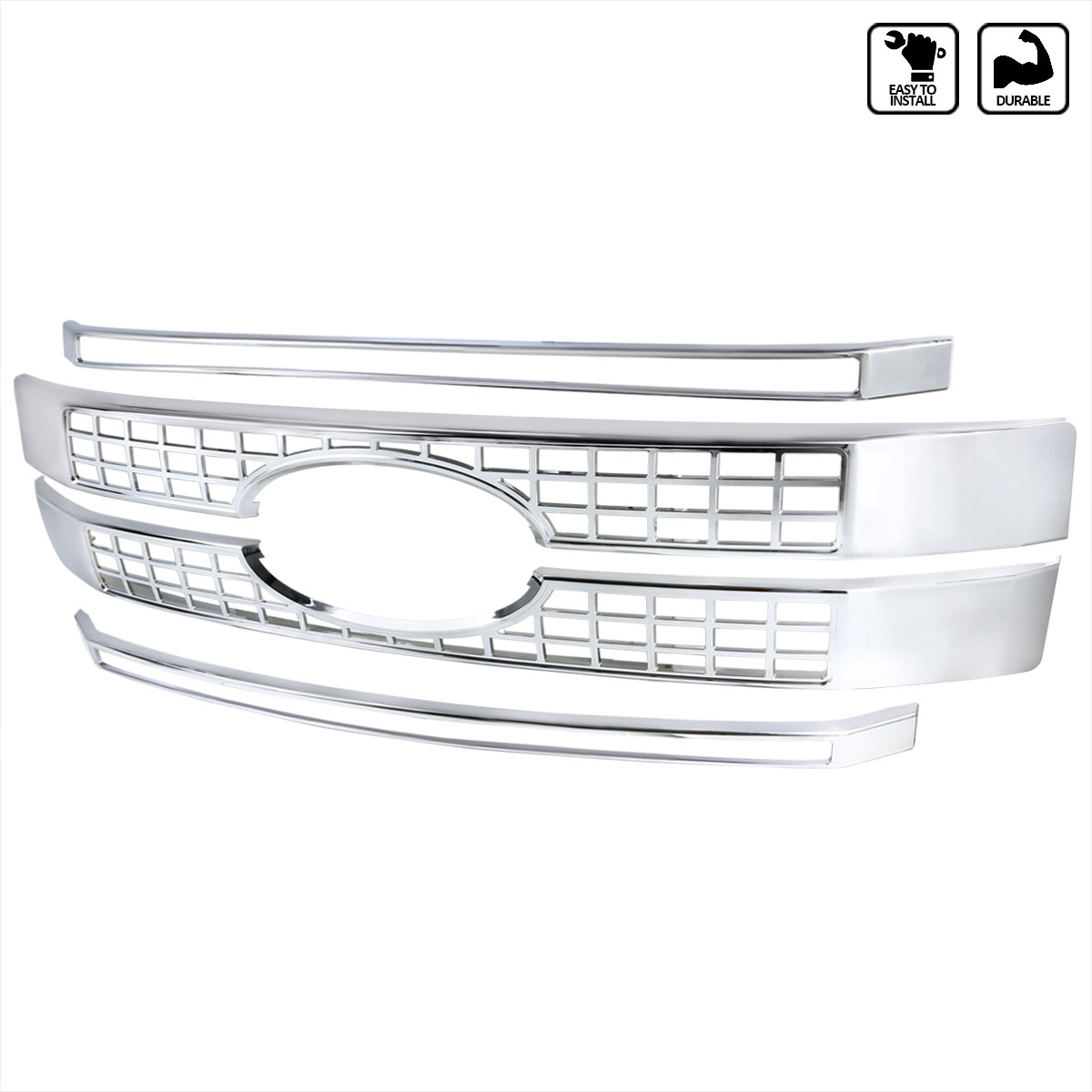 Spec-D Tuning Front Hood Grille Overlay Chrome Cover Compatible with Ford F250 F350 F450 Super Duty 2017-2018