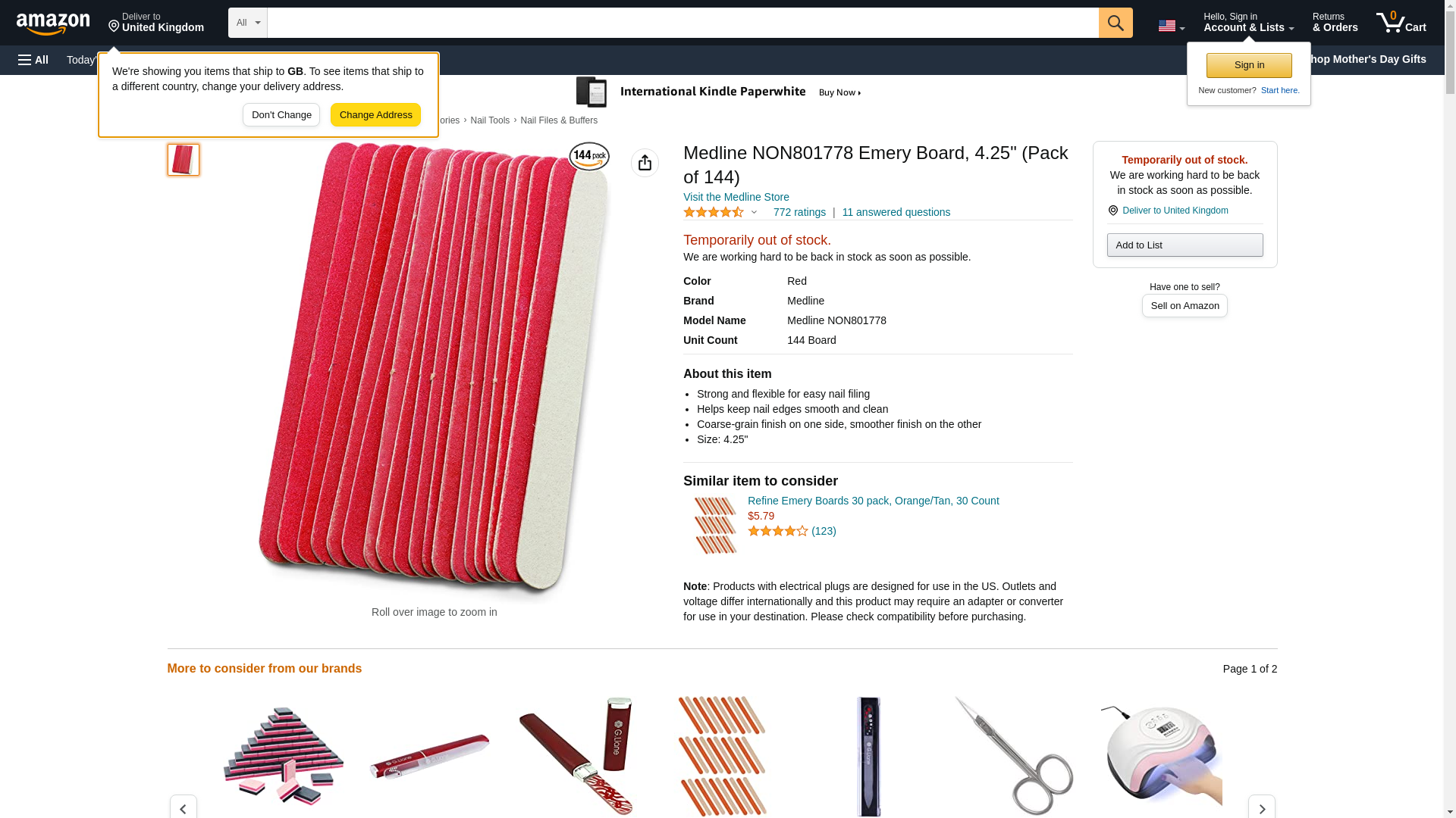 Medline Emery Board, 4.25" Length (Pack of 144)